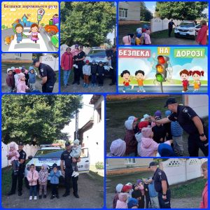 На захід були запрошені працівники поліції, які у доступній формі розповіли малюкам, як правильно поводитися на узбіччі, безпечно переходити дорогу, а також нагадали про значення основних дорожніх знаків, знайомих дітям.